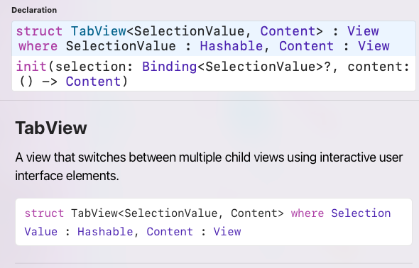 - value를 생략하려면 TabView에서 selection도 생략해야 하며, 표시되는 뷰가 고유하게 구분될 수 있어야 합니다.
