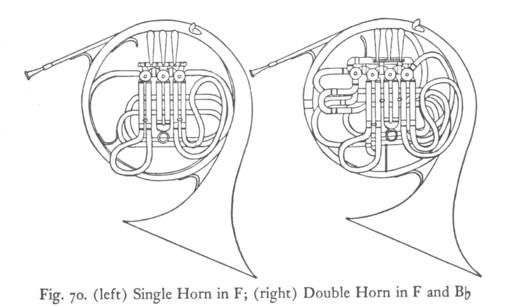 그러나 곧 호른의 가장 중요한 특징인 따뜻하고 어두운 아름다움의 음색은, 아무리 장점이 많더라도 고음용 B♭ 호른만으로는 충분히 구현할 수 없다는 사실이 분명해졌습니다. 오늘날에는 이러한 문제를 더블 호른의 발명으로 실용적으로 해결하게 되었습니다.