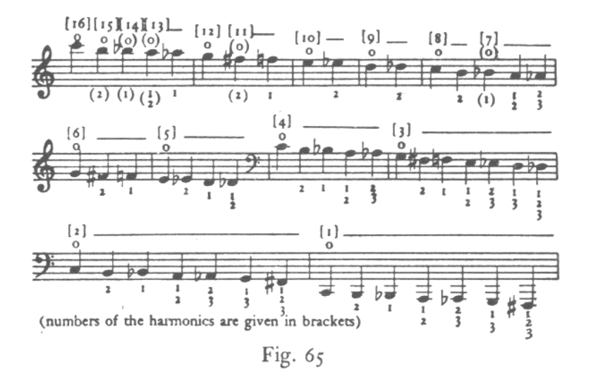 Fig. 65, 금관악기의 일반적인 운지(fingering)