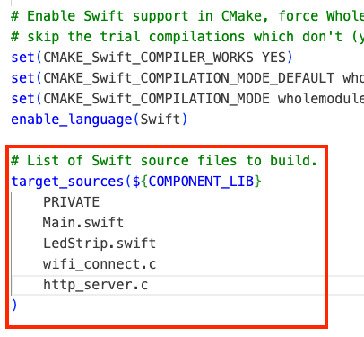 target_sources(${COMPONENT_LIB} PRIVATE Main.swift LedStrip.swift wifi_connect.c http_server.c )